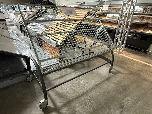 Zum Verkauf steht ein stabiles Metallregal für Obst & Gemüse, ideal für Supermärkte, Hofläden oder Marktstände. Durch die praktische Schräge können Waren optimal präsentiert werden.