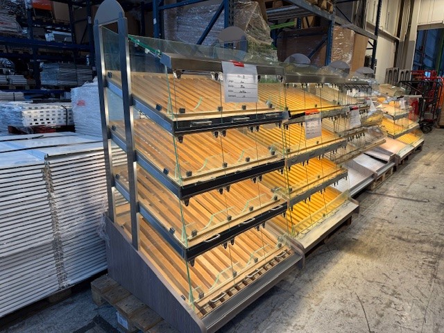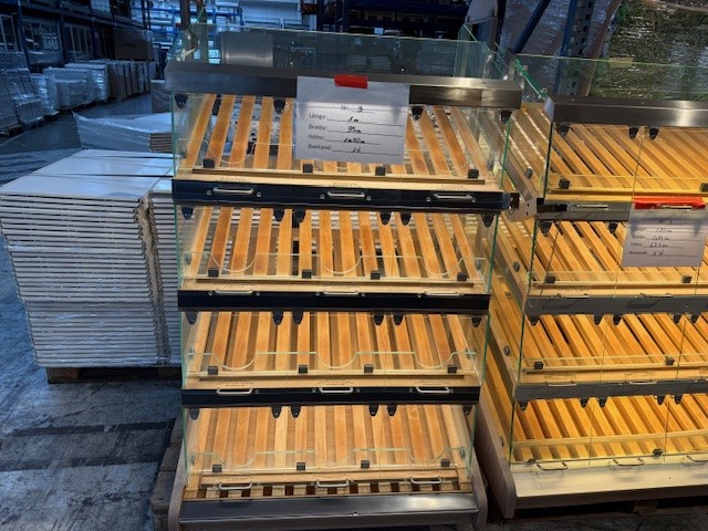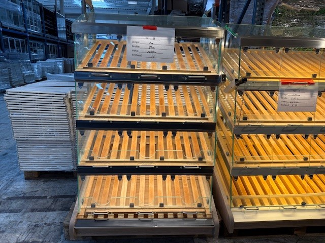 Zum Verkauf stehen hochwertige Brotregale mit Glasfront und LED-Beleuchtung.