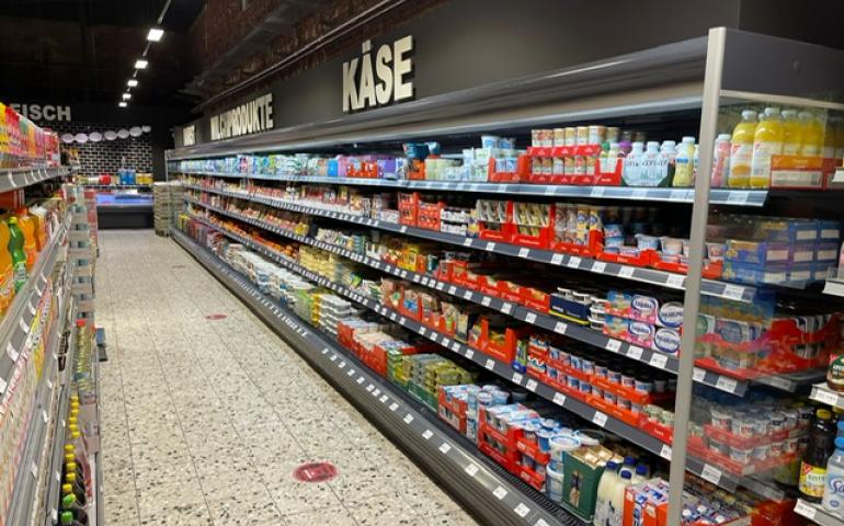 Klares, modernes Design mit niedriger Front und großflächiger Warenpräsentation